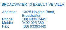 The facilities at Broadwater Executive Villas are second to none, featuring an indoor heated swimming pool and floodlit tennis court in a fully secured resort. This privately owned 3 bedroom, 2 bathroom (3 WC) villa has air-conditioned living areas to ensure your comfort anytime of the year. There is a mini-mart, food hall, news agency, hairdresser and pharmacy in the adjacent Broadwater Shopping Centre